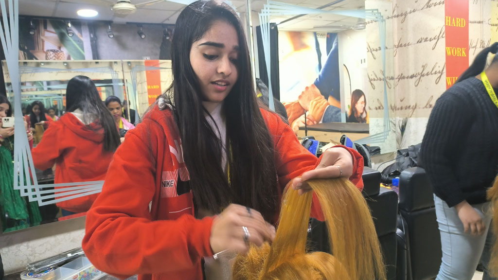 - Hair Styling and Cutting: Learning the art of hairstyling, cutting, and coloring.
